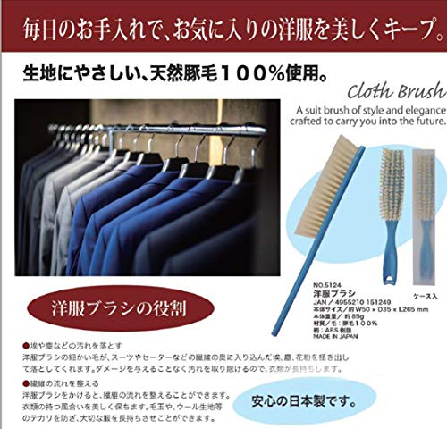キヌガワカンパニー,天然豚毛100% 生地にやさしい洋服ブラシ 5124, 約5×4×26.5cm