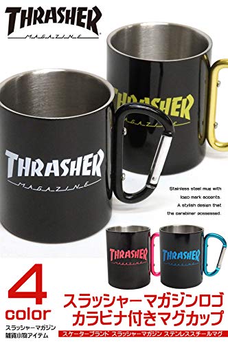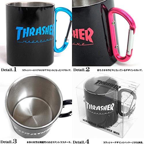 THRASHER マグカップ スラッシャー カラビナ付きマグカップ ステンレススチール (ブラック/ピンク, フリーサイ