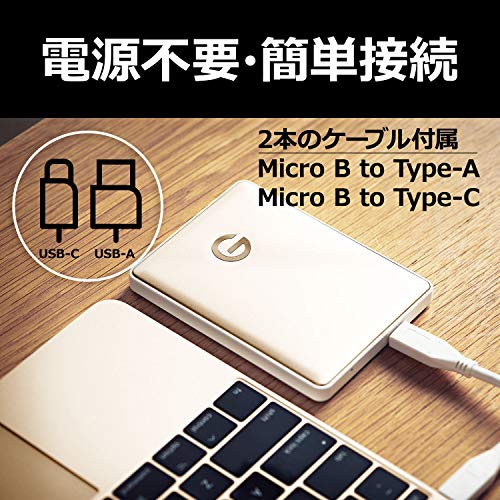 G-Technology ポータブルHDD 2TB ゴールド G-DRIVE Mobile USB-C 3年保証 0G10340