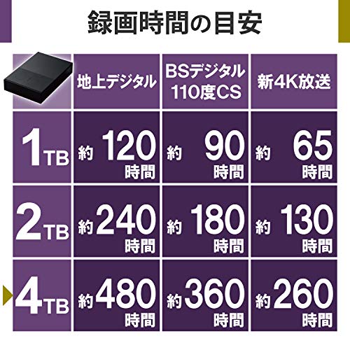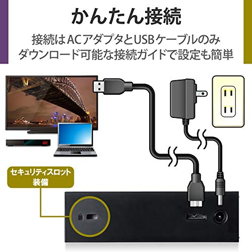 エレコム 外付けハードディスク 4TB USB3.2(Gen1) 4K テレビ録画/パソコン対応 静音ファンレス設計 ELD-GTV040UBK