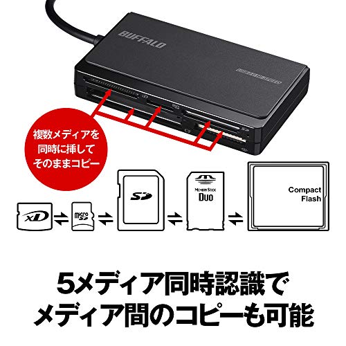 BUFFALO USB2.0 マルチカードリーダー UHS-I対応ケーブル収納モデル ブラック BSCR508U2BK