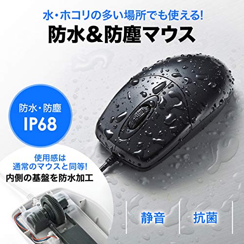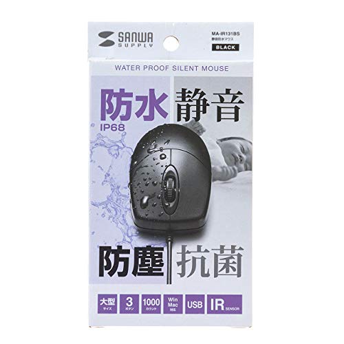 サンワサプライ 抗菌 静音防水マウス 有線USB 水洗い可 ブラック MA-IR131BS