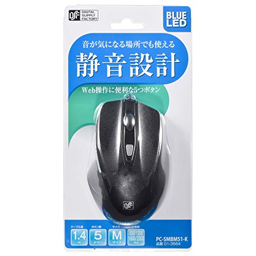 OHM 静音マウス ブルーLED Mサイズ ブラック PC-SMBM51-K