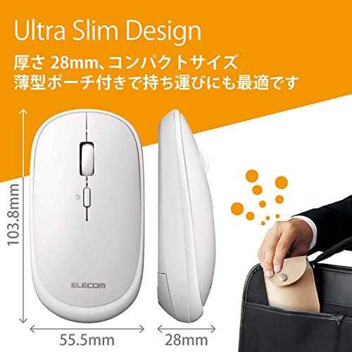 エレコム ワイヤレスマウス 無線2.4GHz Slint M-TM10DBWH 薄型 静音 4ボタン プレゼンモード機能付 ポーチ付 Windows Mac