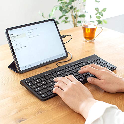 USB Type-Cコネクタを搭載したパソコンやタブレットで使用できるスリムキーボードです。