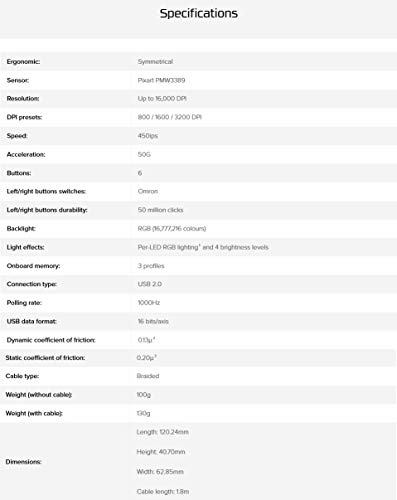 最大16,000ネイティブDPIが可能なPixart 3389センサー