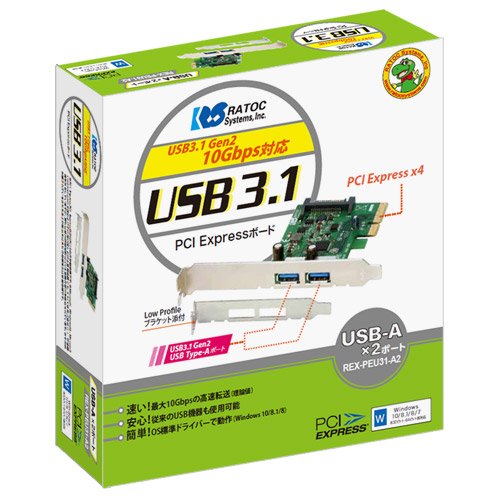 ラトックシステム USB3.1 PCI Expressボード(Type-A×2) REX-PEU31-A2