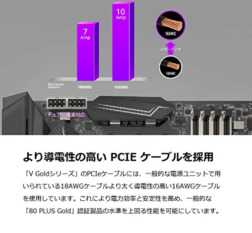導電性の高い16AWG PCI-eケーブルを採用し、高い電力効率を実現