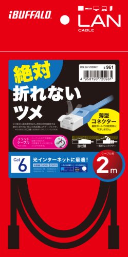 BUFFALO ツメの折れないLANケーブル カテゴリー6 ストレート フラット 2m ブラック BSLS6FU20BK2
