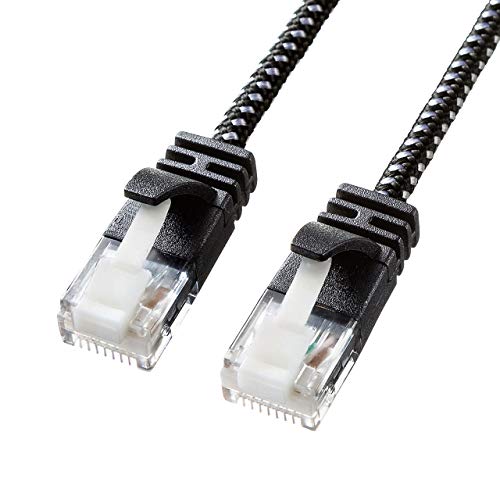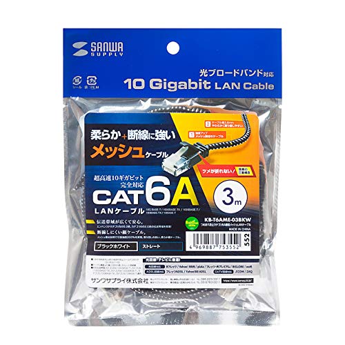 サンワサプライ CAT6A細径メッシュLANケーブル (3m) 10Gbps/500MHz RJ45 ツメ折れ防止 ブラック&ホワイト KB-T6AME-03BKW
