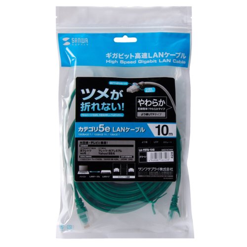 サンワサプライ ツメ折れ防止CAT5eLANケーブル 10m グリーン LA-Y5TS-10G