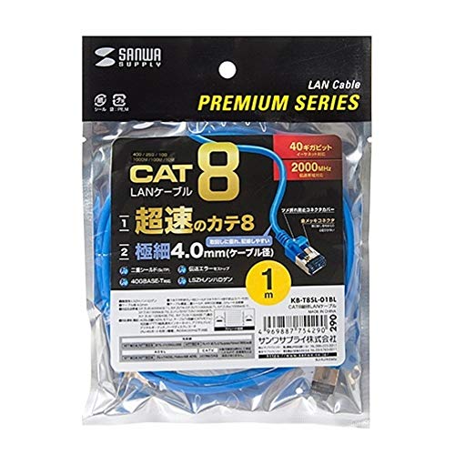 サンワサプライ CAT8 細径LANケーブル(1m) 40Gbps/2000MHz RJ45 ツメ折れ防止 ブルー KB-T8SL-01BL