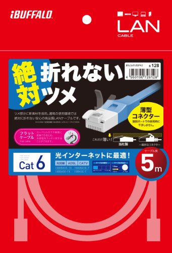 BUFFALO ツメの折れないLANケーブル カテゴリー6 ストレート フラット 5m ピンク BSLS6FU50PK2
