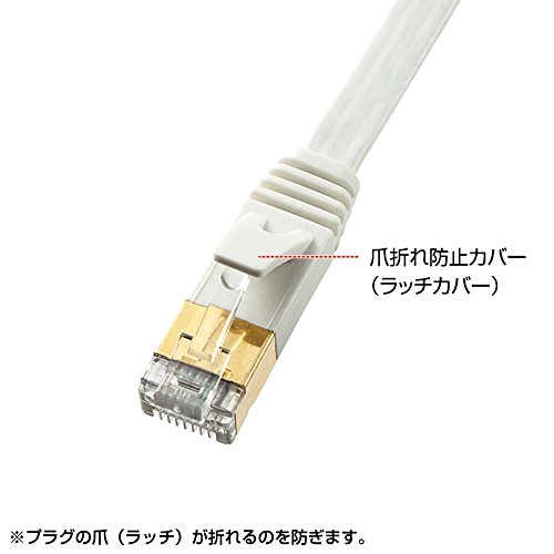 サンワサプライ CAT7フラットLANケーブル (7m) 10Gbps/600MHz RJ45 ツメ折れ防止 ホワイト KB-FL7-07WN