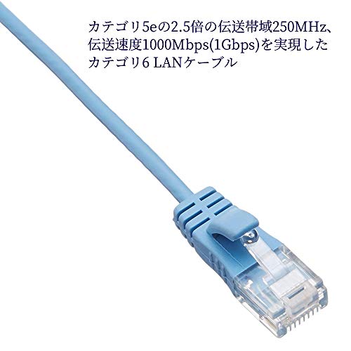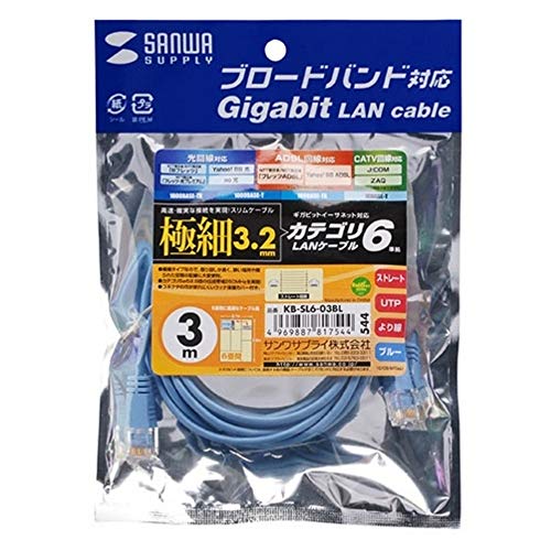 サンワサプライ CAT6準拠LANケーブル 直径3.2mm極細タイプ (3m) 1Gbps/250MHz RJ45 ツメ折れ防止 ブルー KB-SL6-03BL