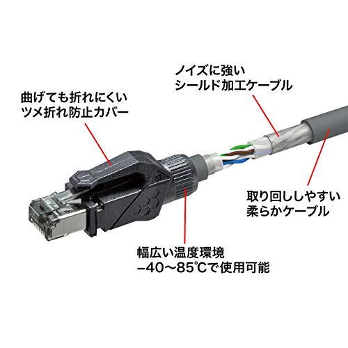 サンワサプライ CAT6A STP LANケーブル(10m) 10Gbps/500MHz RJ45 ツメ折れ防止 グレー KB-T6ASTP-10GY
