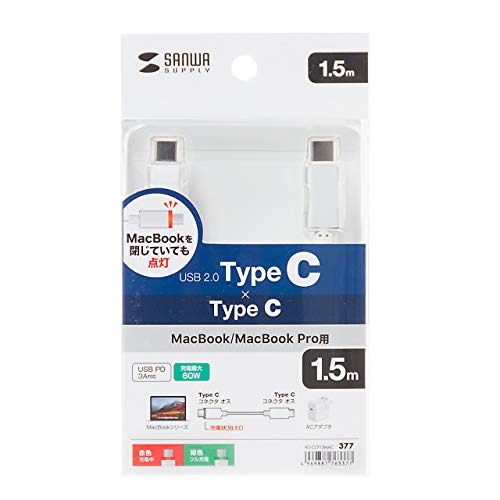 サンワサプライ MacBook用LED付きTypeC充電ケーブル 1.5m USB Power Delivery対応 KU-CCP15MAC