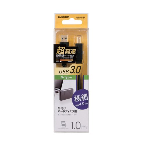 エレコム USBケーブル USB3.0 (USB A オス to USB B オス) スリム 1m ブラック USB3-ABX10BK
