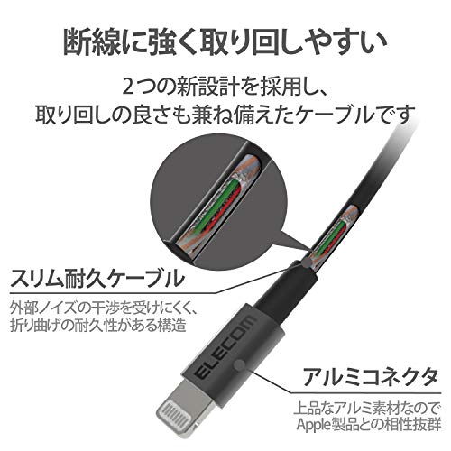 エレコム Lightningケーブル 準高耐久 アルミコネクタ 1.0m ブラック MPA-UALPS10BK