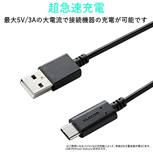 エレコム USB TYPE C ケーブル タイプC (USB A to USB C ) 3A出力で超急速充電 USB2.0準拠品 0.1m ブラック MPA-AC01BK