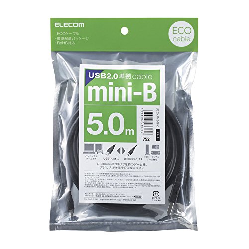 エレコム RoHS指令準拠&環境配慮パッケージ エコUSBケーブル USB2.0 A-miniBタイプ 5m ブラック U2C-JM50BK