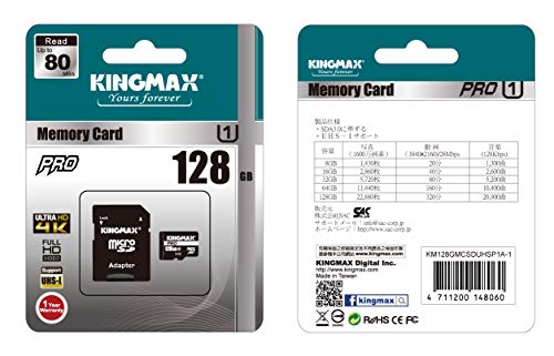 KINGMAX microSDXCカード 128GB Class10 UHS-I 対応 SD変換アダプター付属 スマホ カメラ タブレッドPC パソコン 等 対応 KM