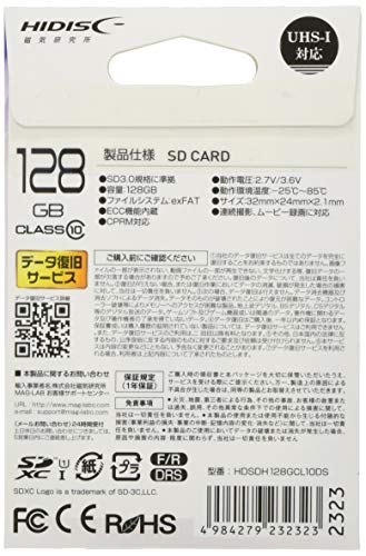 HIDISC SDXCカード 128GB CLASS10 UHS-1対応 データ復旧サービス付 プラケース付き HDSDH128GCL10DS