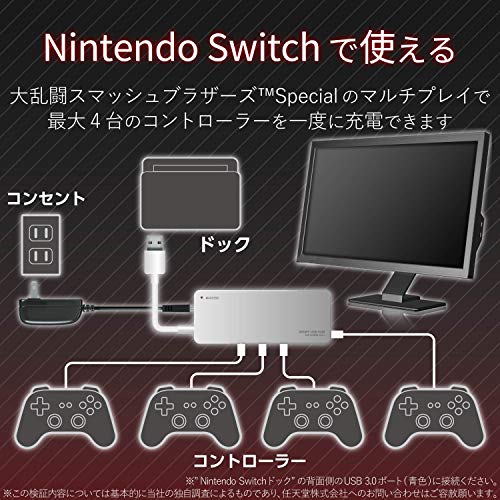 Nintendo Switchで複数コントローラーの充電/有線接続が可能。大乱闘スマッシュブラザーズ Specialでマルチプレイを行う際、最大4台のコントローラーを一度に充電することが可能です。また、有線接続にもご使用になれます。