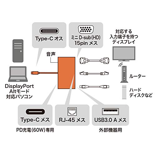 サンワサプライ USB Type C-VGAマルチ変換アダプタ with LAN AD-ALCMVL