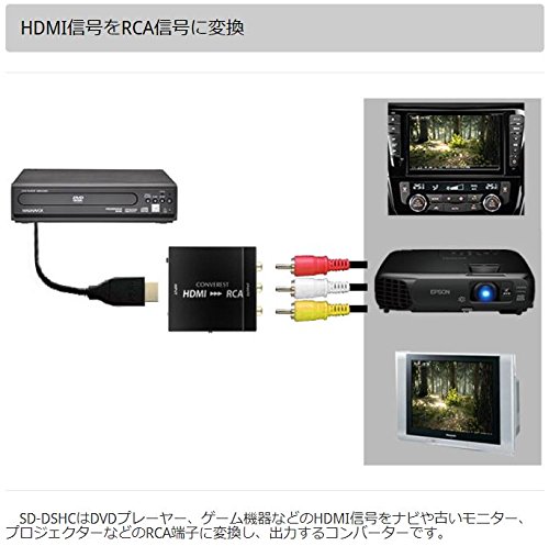 【HDMI信号をRCA信号に変換】SD-DSHCはDVDプレーヤー、ゲーム機器などのHDMI信号をナビや古いモニター、プロジェクターなどのRCA端子に変換し、出力するコンバーター 【画面調整機能】ナビやサイズの小さいモニターに出力する場合、画面が切れてしまい、完全に表示出来ない場合があります。本製品