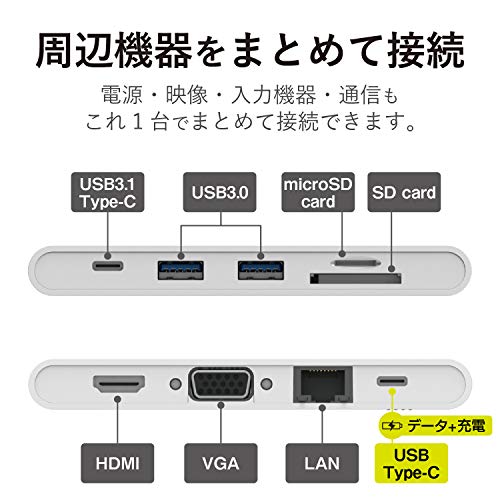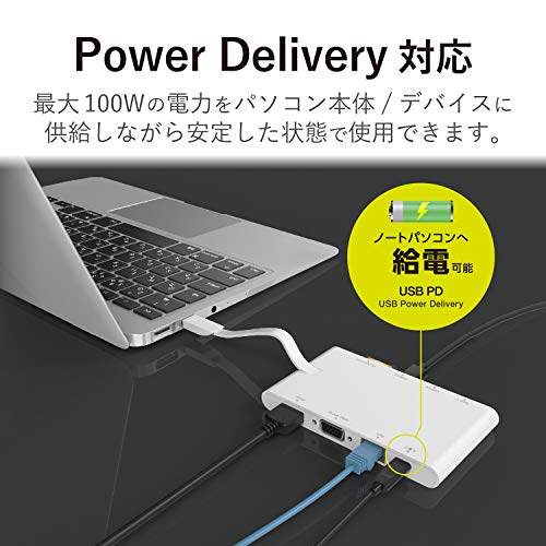 ピタッとケーブル収納できて、持ち歩きに便利。 ノートパソコンへ給電できるPower Deliveryに対応し、USB Type-C搭載パソコンにケーブル1本でさまざまな周辺機器を一括接続できるUSB Type-C接続モバイルドッキングステーション。