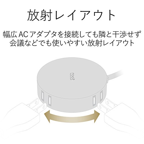 エレコム 電源タップ 見せるインテリア roo't(ルオット) 丸型 4個口 2.5m ホワイト AVT-D4-2425WH