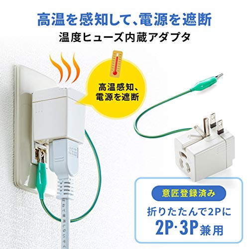 サンワサプライ 温度ヒューズ内蔵アダプタ 2P・3P兼用プラグ アース付き TAP-AD9W
