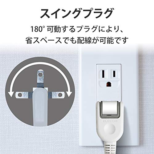 エレコム 電源タップ 雷ガード スイングプラグ 6個口 5m ホワイト T-K1A-2650WH