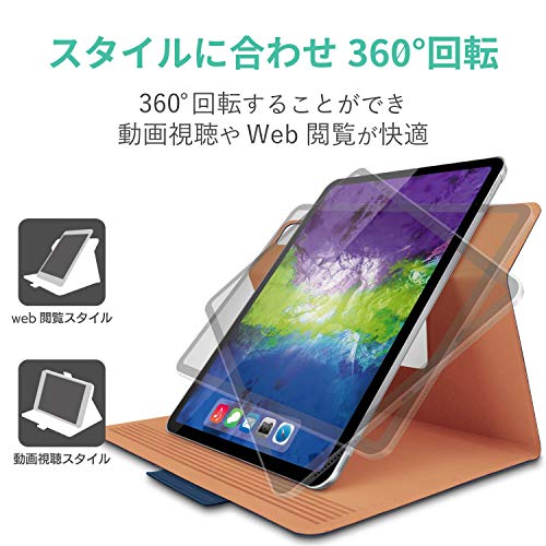 エレコム iPad Pro 11インチ 2020年モデル フラップケース ソフトレザー 360度回転 スリープ対応 ネイビー TB-A20PMWVS