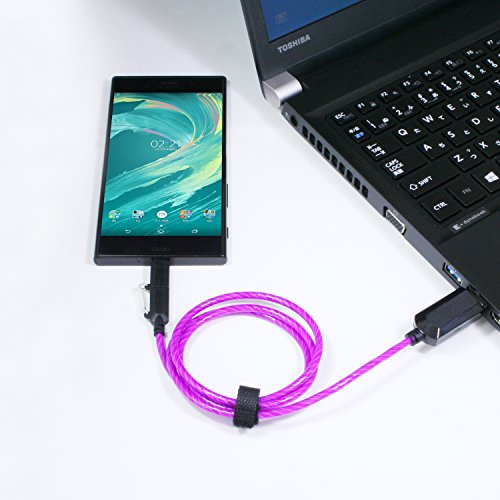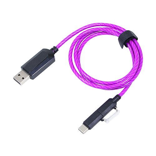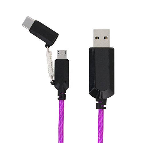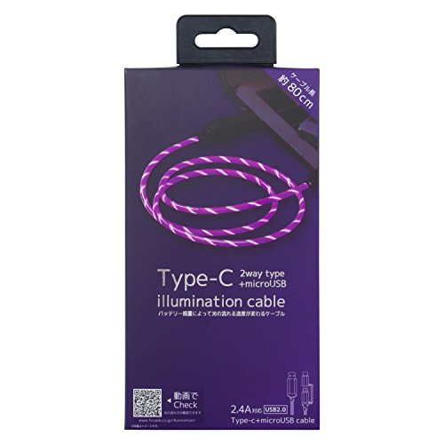 F.S.C. Type-C 変換アダプタ付 イルミネーションケーブル ELライト搭載 最大出力5V/2.4A 最大480Mbps USB2.0規格 パープ