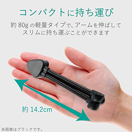 持ち運びやすい約80gの軽量設計。アームを曲げて最適な角度でタブレットやスマートフォンを設置できるフレキシブル三脚スタンド。