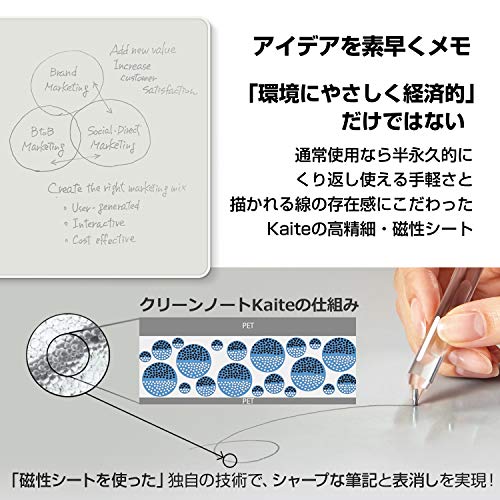 【特長】消耗品ゼロで何度も使える、新感覚のメモツール。紙のような書き心地の磁性メモパッド「kaite (カイテ)」専用ペン