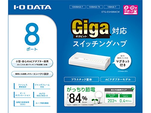 I-O DATA スイッチングハブ 8ポート ホワイト マグネット付|1000BASE-T(GigabitEthernet)対応|省電力機能付|ETG-ESH08WCM