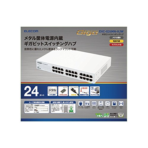 エレコム スイッチングハブ ギガビット 24ポート マグネット付き 電源内蔵 金属筺体 EHC-G24MN-HJW