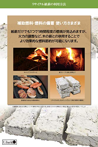 UJackのペーパーログメーカーでは新聞紙や要らなくなった古紙を使用して紙薪を作ることができます。作成した紙薪ブロックは焚き火や薪ストーブの補助燃料として活用できます。