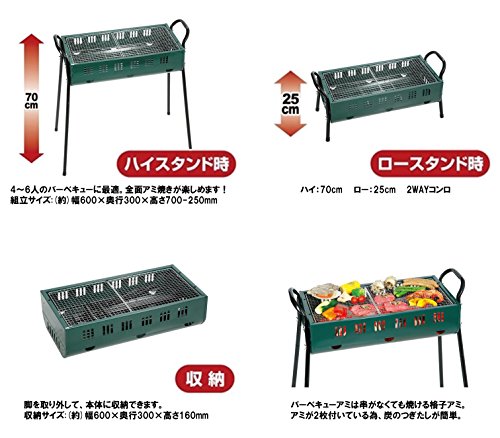 セット内容:本体×1、バーベキュー網(大)×1・(小)×1、目皿×1、脚×4、脚受け×2、ネジ×8、ナット×8、キャップ×4