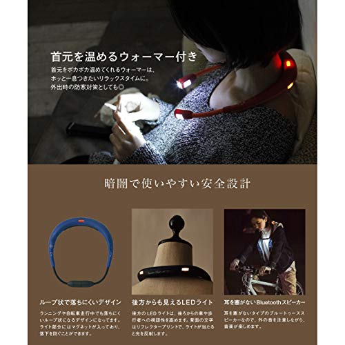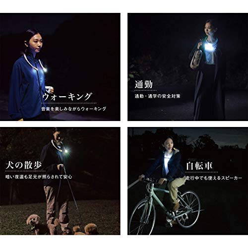首から掛けるタイプのハンズフリーのウォーキングライト。さらに音楽を楽しめるBluetoothスピーカーや、首元が温かくなるウォーマー機能を搭載