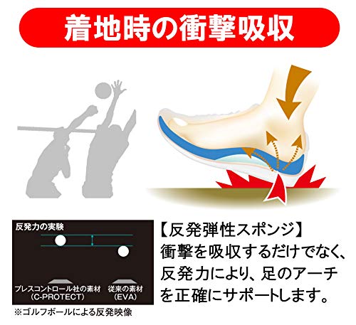 【衝撃吸収】全面に使用している反発弾性スポンジとカカトのエラストマーにより、ジャンプの着地時の衝撃から身体を守ります。