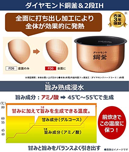 お米一粒一粒に熱をしっかり伝える「ダイヤモンド銅釜」、全面打ち出し加工で発熱面積アップ