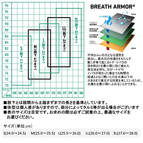 対応足サイズ(cm):S 240-24.5/M 25.0-25.5/L 25.5-26.0/LL 26.0-27.0/3L 27.0-28.0