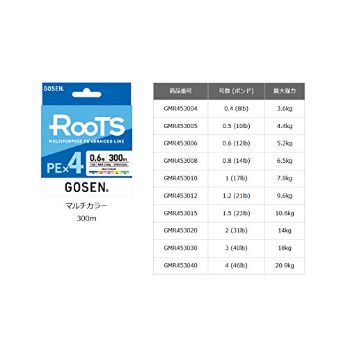 ゴーセン GMR453015 ルーツ PEx4 マルチカラー 300m 1.5号