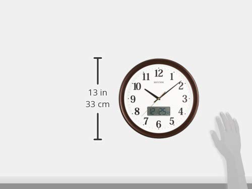 リズム(RHYTHM) 掛け時計 茶 Φ32.5x5cm 電波 アナログ デジタル 連続秒針 温度 湿度 カレンダー 8FYA02SR06