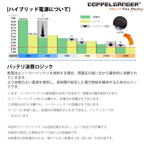 DOPPELGANGER インテリジェントハイブリッドソーラーLEDライト ニッケル水素電池内蔵 単4乾電池併用可 サイドブ