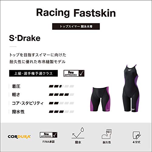 Speedo(スピード) 競泳水着 エス・ドレイクニースキン ブラック/ピーコックブルー L SCW11905F